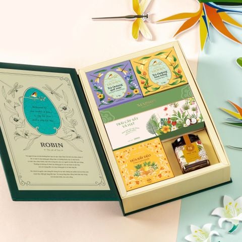 - Sản phẩm: Hộp quà sẽ là sự kết hợp chặt chẽ của vị thơm từ bánh qui Hibiscus, vị chát của trà cùng vị ngọt của hoa quả sấy dẻo cao cấp. Đặc biệt, khách hàng cũng có thể tùy chọn sản phẩm và thiết kế hộp quà theo ý thích và nhu cầu cá nhân mình